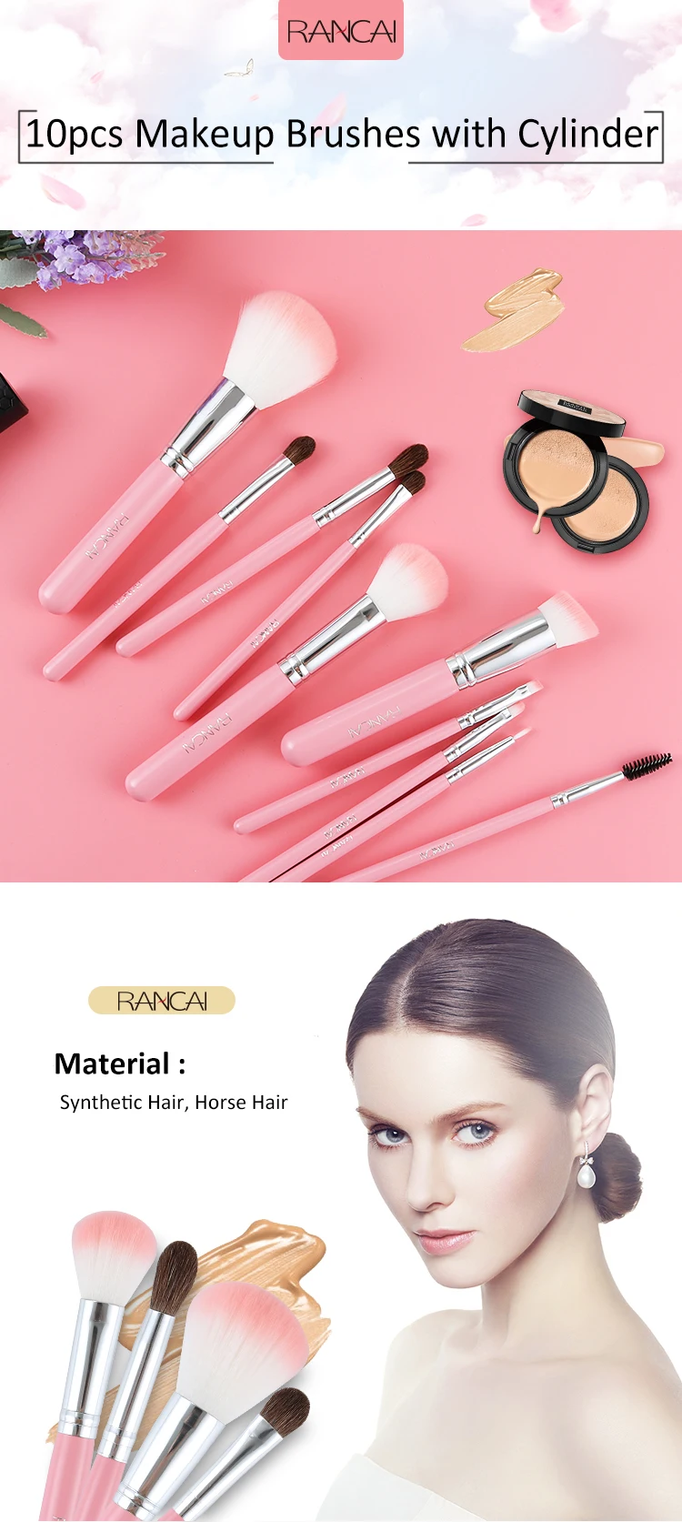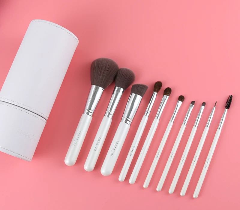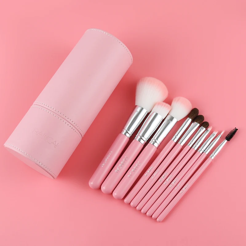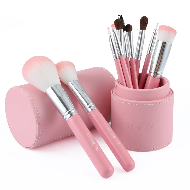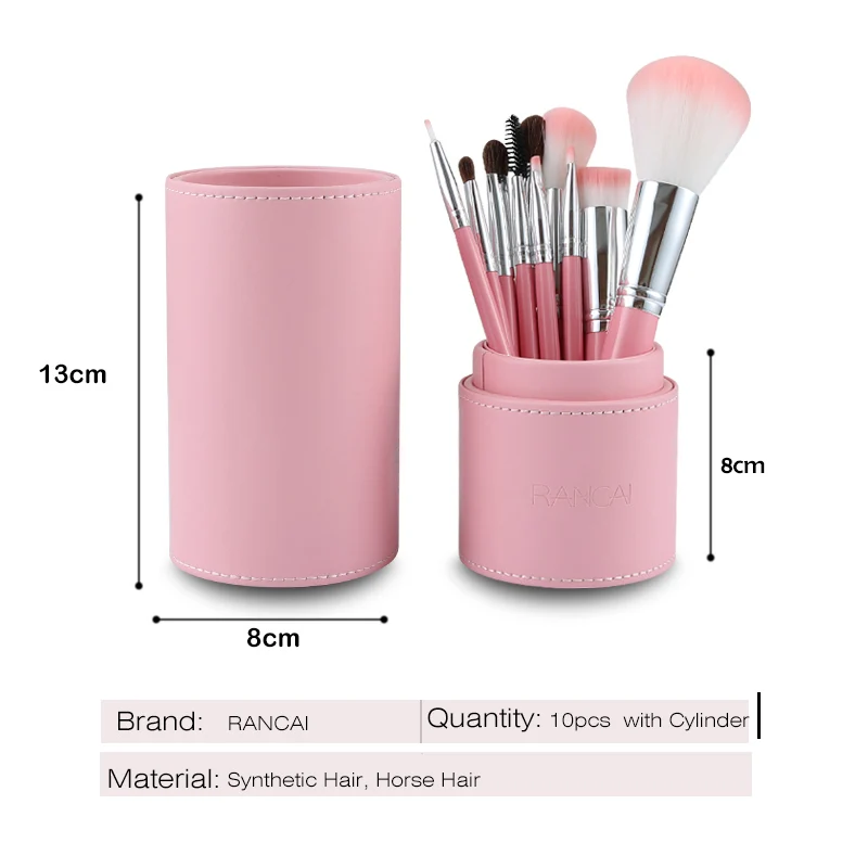 RANCAI 10pcs Make up Brushes Professional makeup storage organizer High Quality Top Synthetic Hair With Cylinder Brush set
