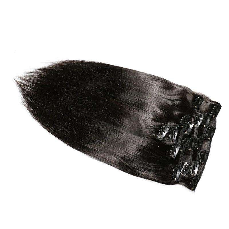 Clip In Human Hair Extensions, Brazilian Remy Straight Hair, Natural Color, 8 Pieces/Set 120g