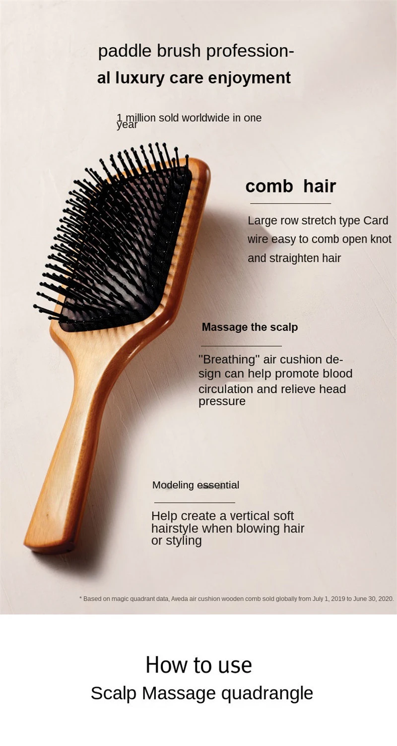 For aveda Massage Comb Gasbag Anti Static Hair Air Cushion Wooden Hairbrush Wet Curly Detangle Hair Brush Hairdressing Styling