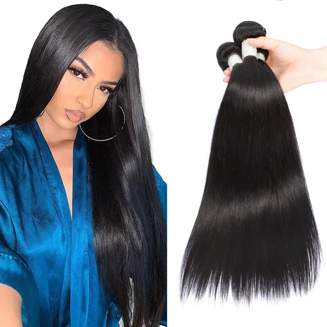 Peruvian Straight Human Hair Bundles 12-32 Inch Long with...