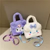 Sanrio Kawaii Plush Bag, Kuromi, Cinnamoroll, Melody, Handbag, Shoulder Bag, Cosmetic Bag and Travel Bag for Women and Girls, Anime Gifts