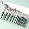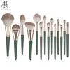 14Pcs Green Makeup Brush Set Soft Fluffy Powder Eyeshadow Foundation Concealer Blush Brushes Beauty Tools Blending Cosmetic