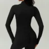 Fleece Lined Bodysuit for Women – Long Sleeve Yoga Jumpsuit, Slim Fit and Seamless with Zipper