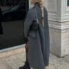 Women’s Long Winter Coat – Double Breasted with Lapel and Pockets