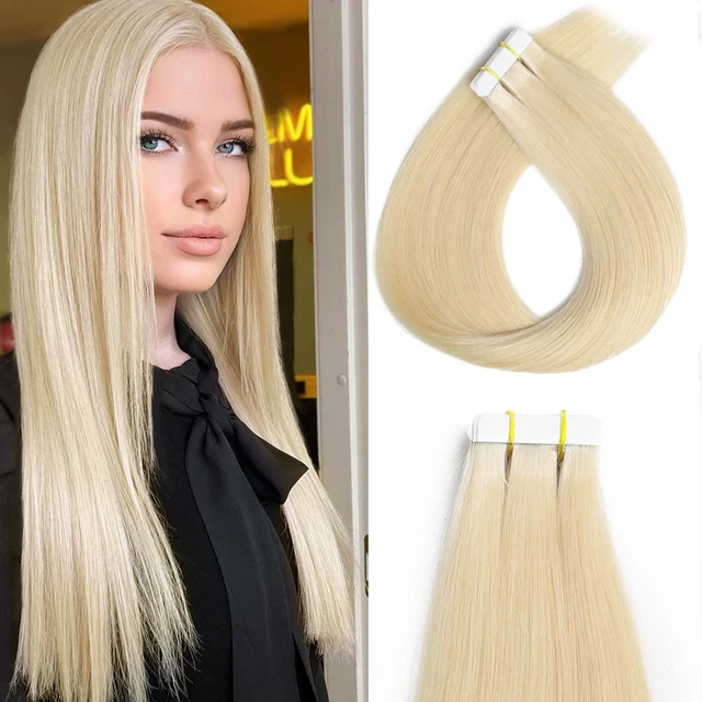 Hair Extensions Human Hair 16-26 Inches Blonde #613 Tape in Hair Extensions Straight Real Tape in Hair Extensions For Woman