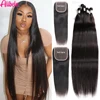 5×5 HD Lace Closure With Bundles Peruvian Straight Bundles 12-32 Inch Long Human Hair Weave Bundles With 4x4Lace Closure