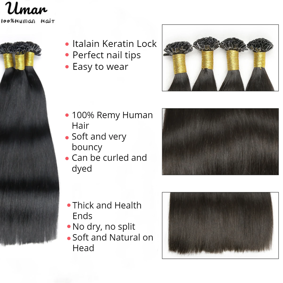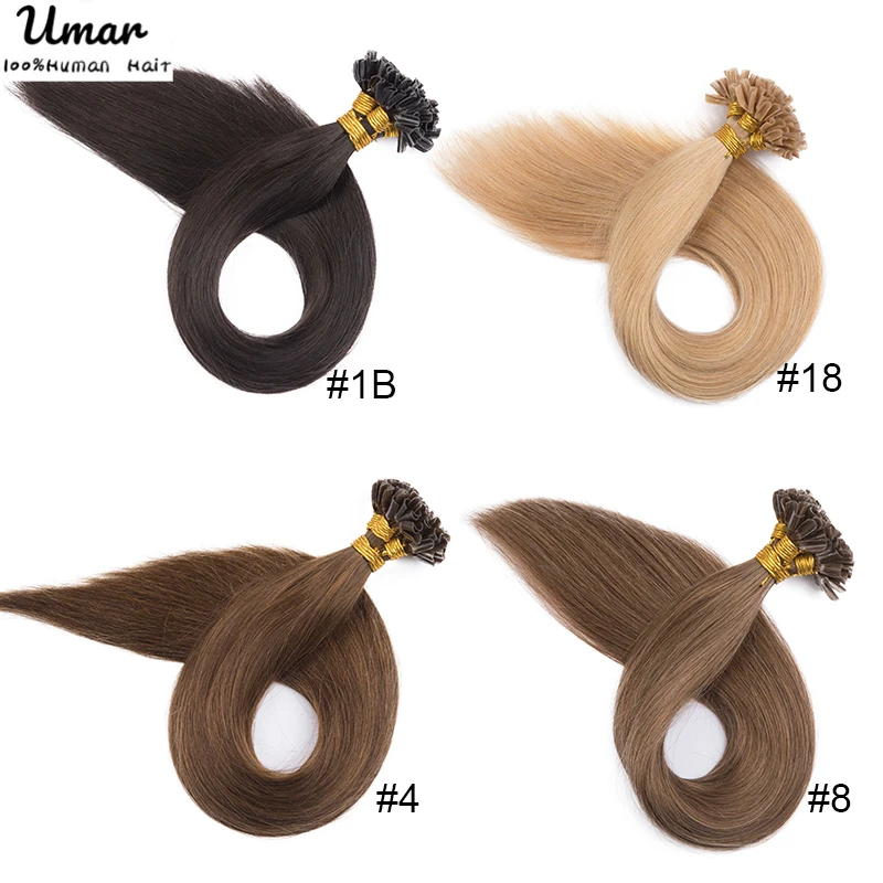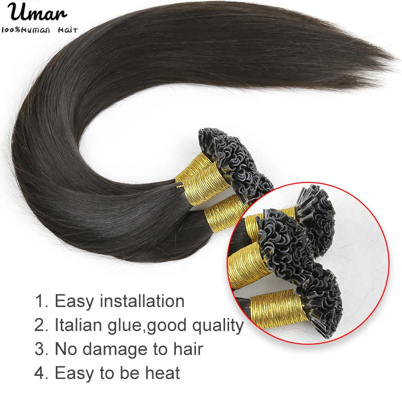U Tip Human Hair Extensions Remy Fusion Hair Extension Keratin Glue Nail Bond Capsule Natural Straight Hair
